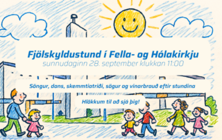 Næsta sunnudag verður fjölskyldumessa kl. 11:00 í Fella- og Hólakirkju. Sr. Pétur Ragnhildar leiðir stundina ásamt Hákoni Arnari. Íris Rós og Dagbjört leiða samsöng. Íris Rós mun einnig flytja tónlist úr Krakkaskaupinu. Eftir stunduna verður boðið upp á vínarbrauð, kex og djús í safnaðarsalnum. Allar fjölskyldur velkomnar. Stundin er sameiginleg [...]