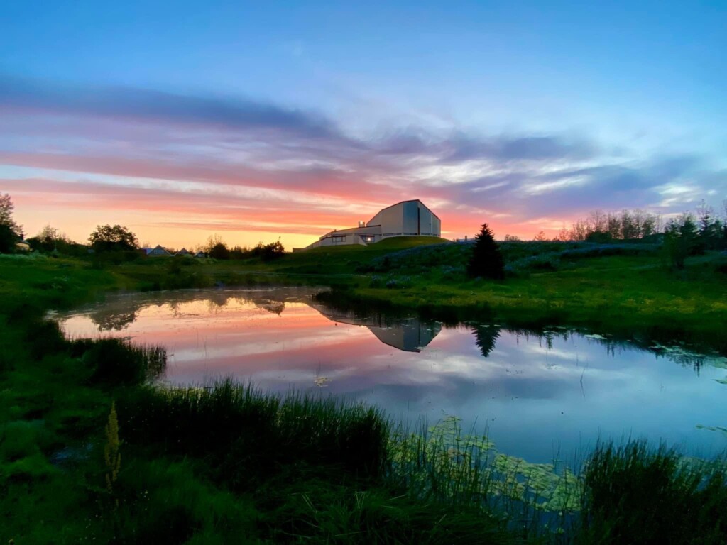 Fella- og Hólakirkja í kvöldsólinni. Myndina tók Kristján Söebeck.